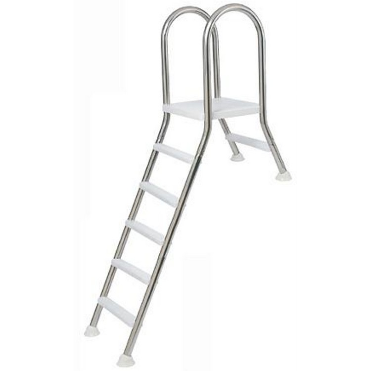 Лестница устанавливаются над бортом бассейна и не крепится к его основанияю, что дает возможность установить ее в любом месте. Одна часть лестницы опирается на дно бассейна, другая на поверхность возле борта.