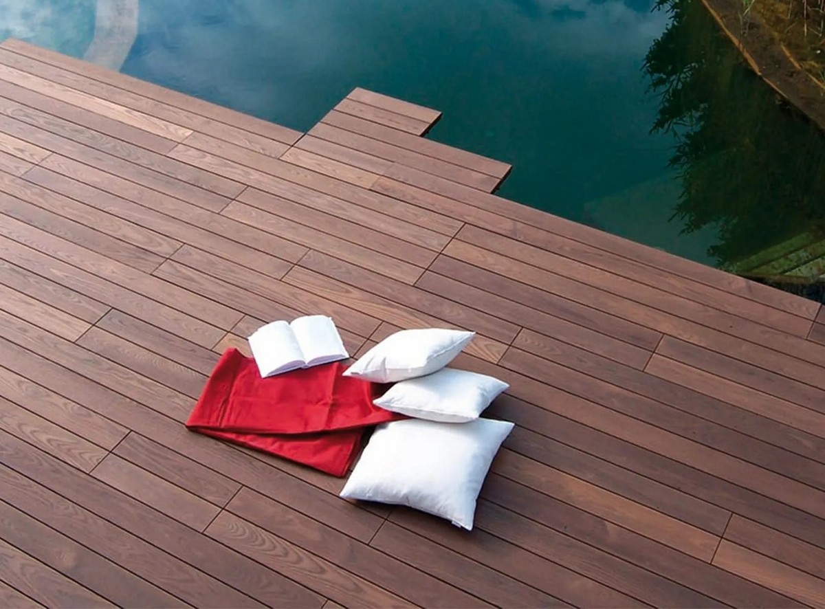 - полімерну терасну дошку - вологостійкий, морозостійкий, стійкий до перепадів температури й вологості, появи грибків і плісняви матеріал з неслизькою і красивою поверхнею;